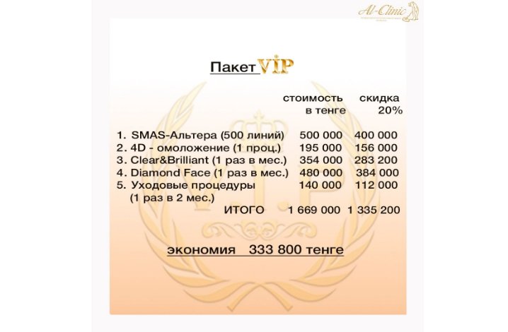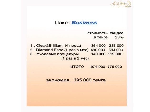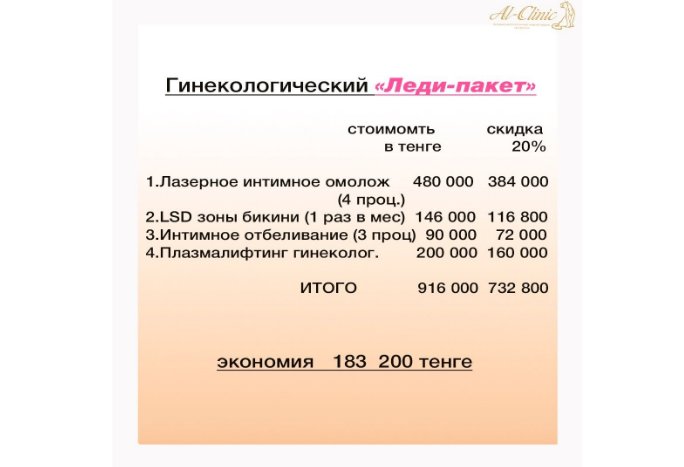 Центр эстетики Al-Clinic - это учреждение широкого профиля, предлагающее специально подобранный комплекс процедур и услуг для каждого клиента. В клинике всё организовано с учетом максимального комфорта для посетителей. Оборудование кабинетов позволяет провести диагностические исследования организма пациента для составления программы лечения и профилактических мероприятий. В клинике функционируют отделения дерматологии, урологии, гинекологии, маммологии, онкологии. Наши работники имеют профильное медицинское образование и с пониманием отнесутся к вашим проблемам. Доверяя свое здоровье нам, вы можете быть уверены в результате.